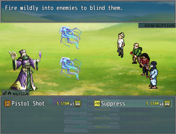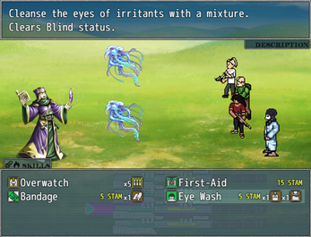 Gameplay wise its the original FF turn base style. With a system using the Chemist job from FF5, but unlike FF5 where you mix items with an unknown result, the characters will learn skills that cost items that you either have to find, grind, or purchase in order to use said skills.